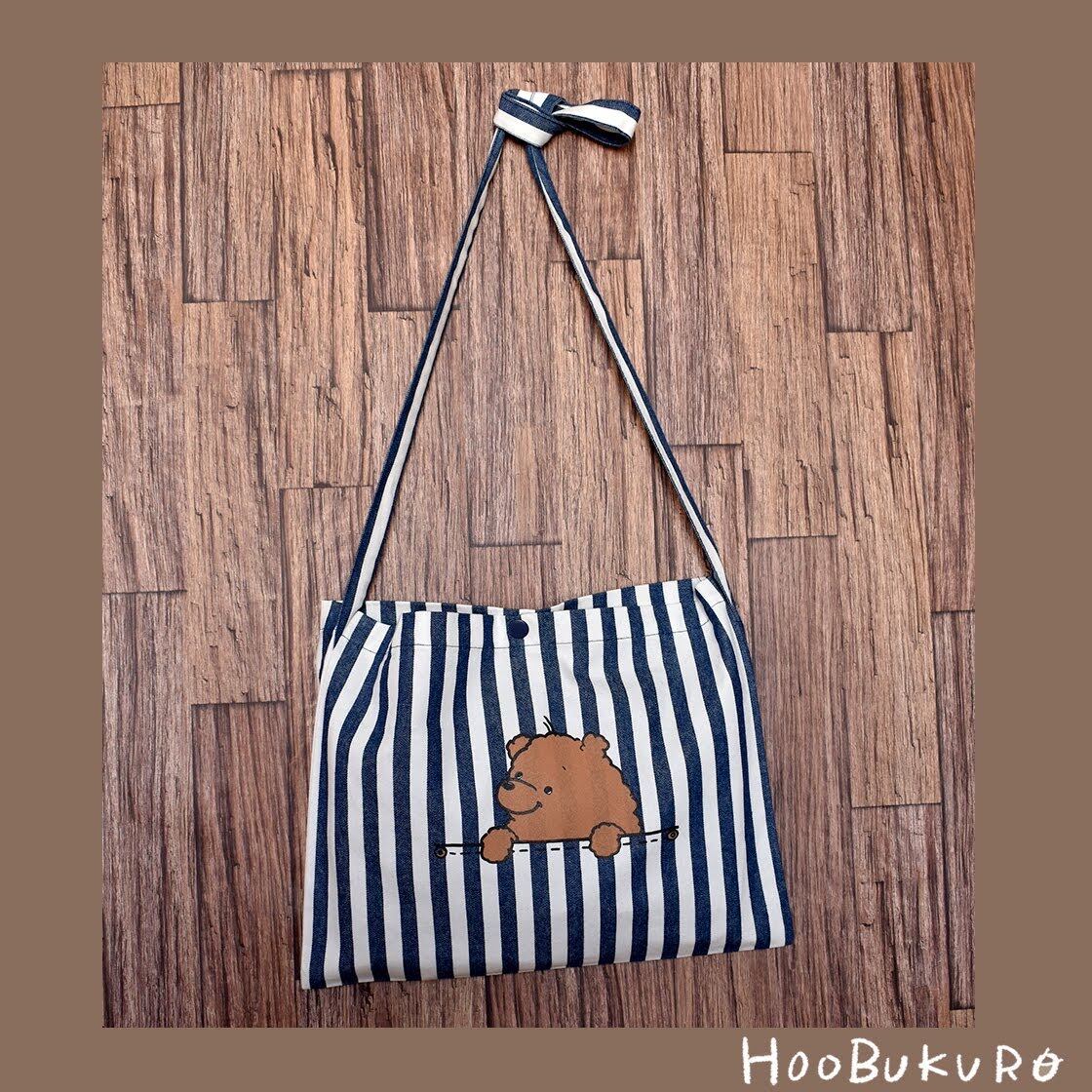ポケットからひょっこりくまさんが出ているプリントのサコッシュです!くまさんと一緒にお出かけするのはいかがでしょうか!