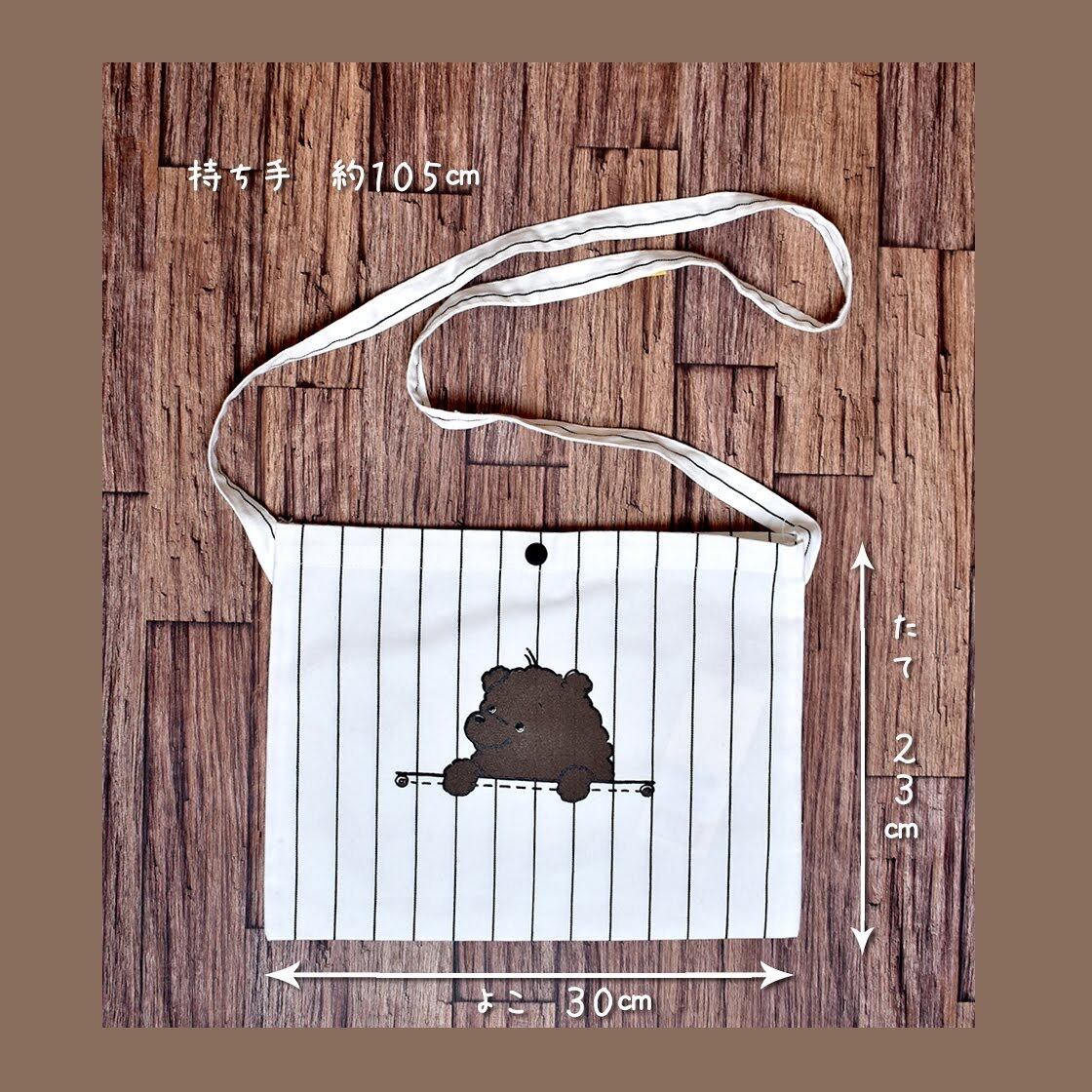 ポケットからひょっこりくまさんが出ているプリントのサコッシュです!くまさんと一緒にお出かけするのはいかがでしょうか!