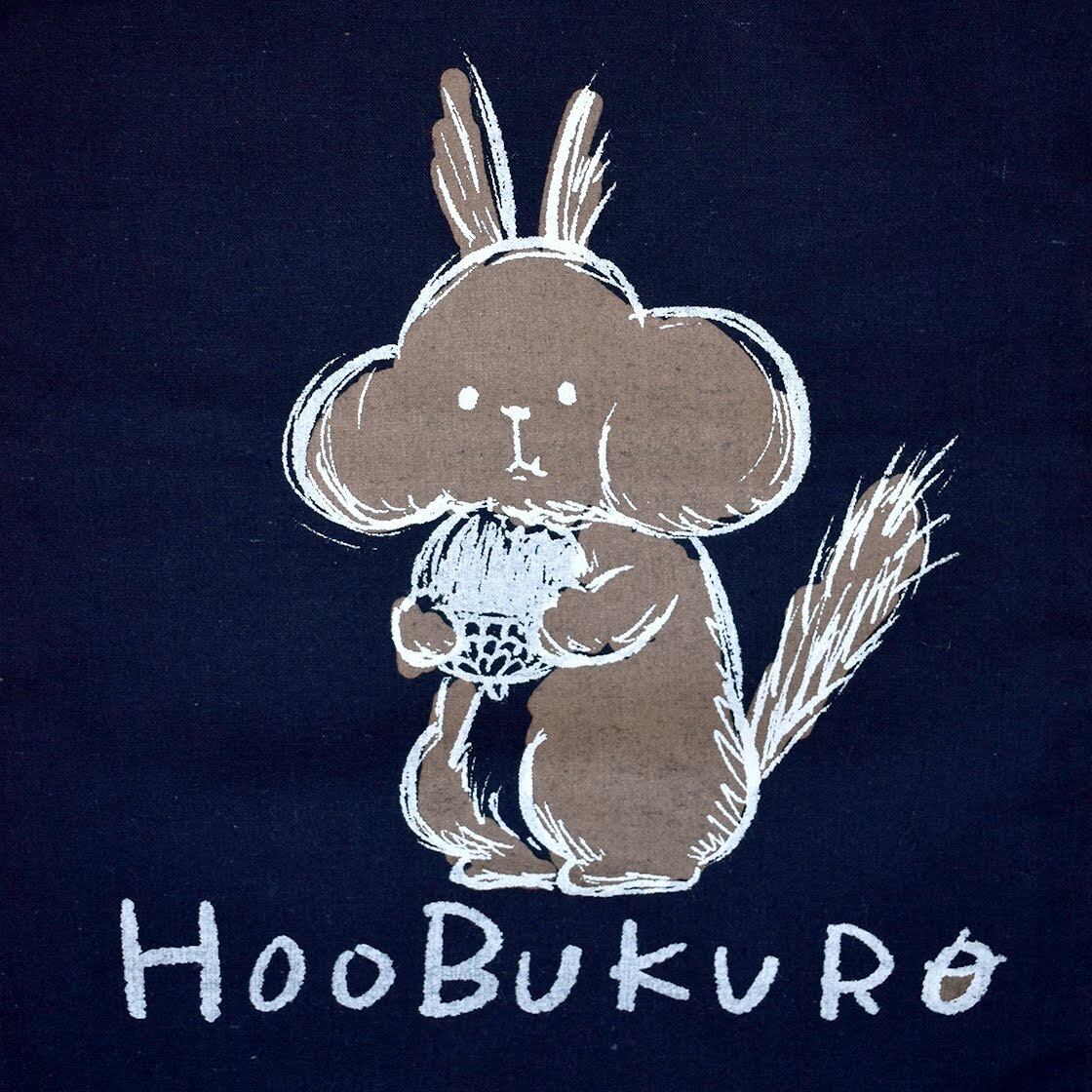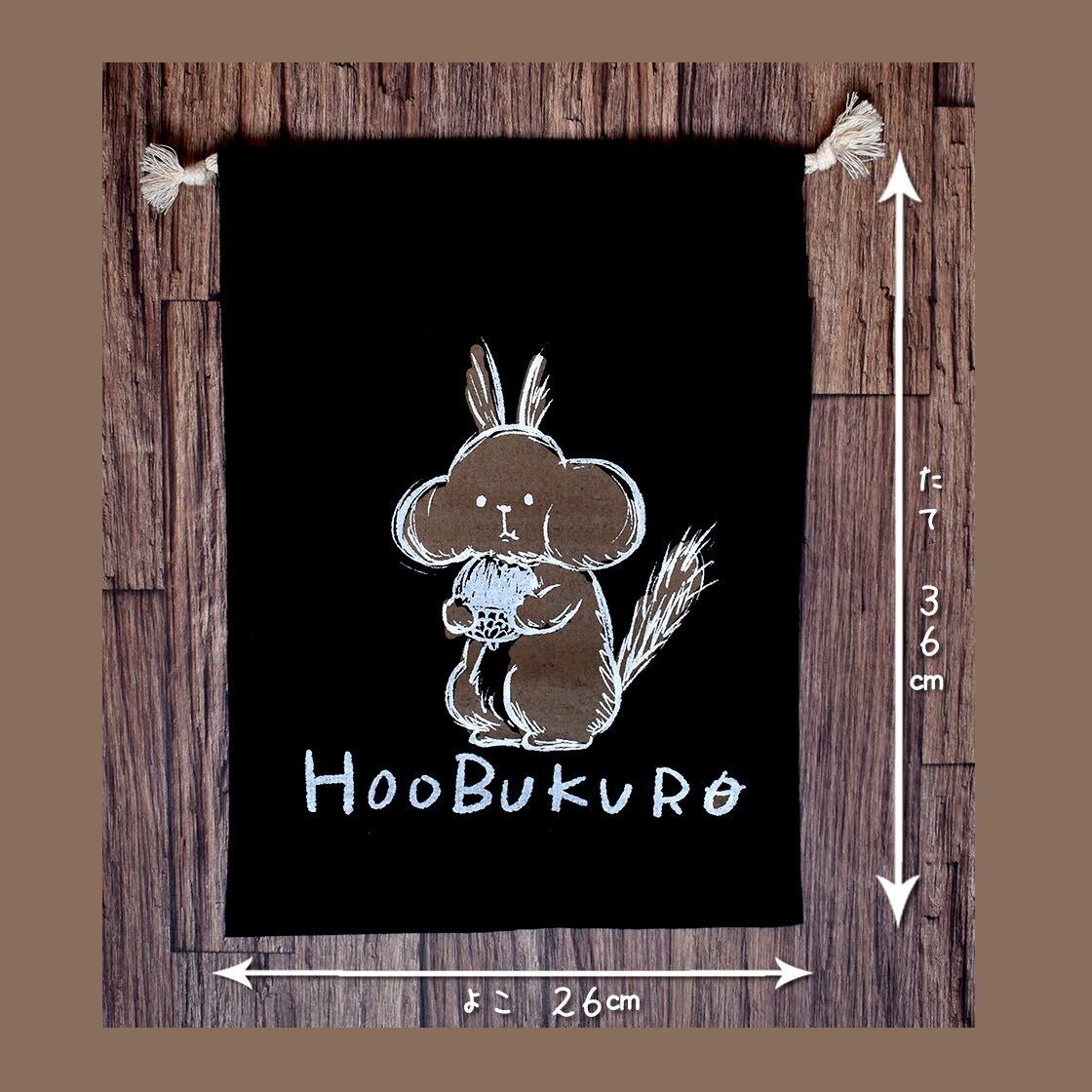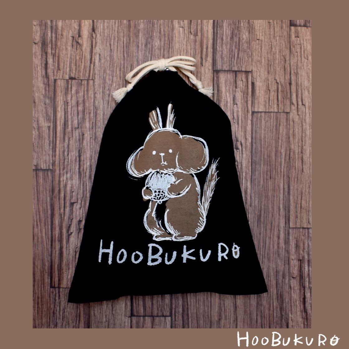 オリジナルブランド「HOOBUKURO 」のロゴを手刷りでプリントした巾着袋です。